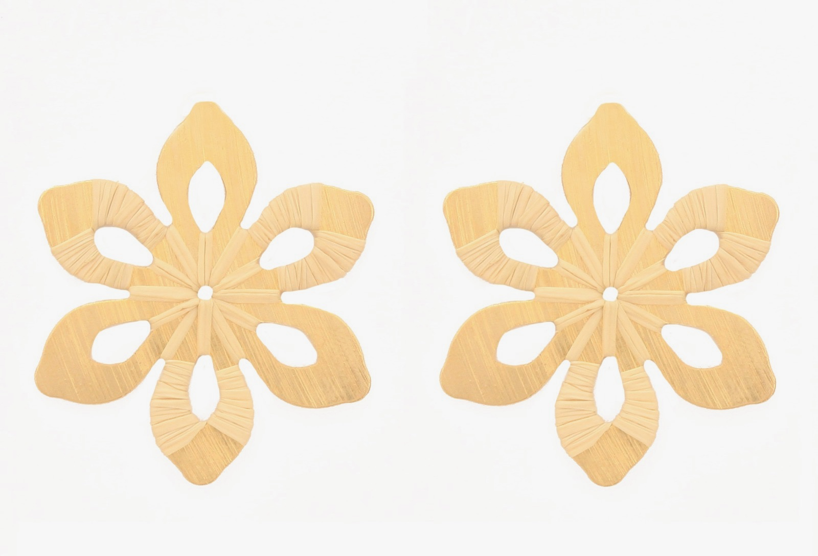 Delicate and timeless, the Verna Studs are floral earrings handwoven from Buriti fiber for a soft, natural touch of elegance. Lightweight and versatile, they bring a feminine glow rooted in nature’s artistry.